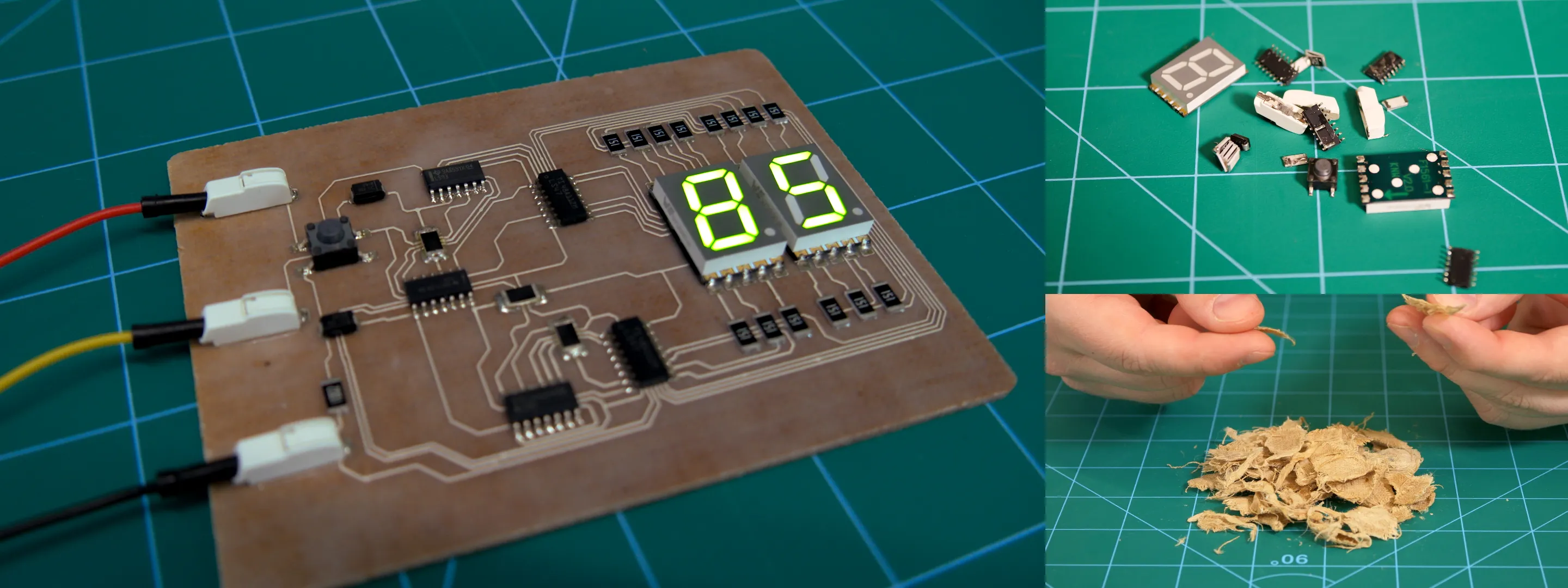 In addition, Soluboard® enables a practical end-of-life pathway. Components can be removed and reused for prototyping or recovery at both lab and commercial scales. Through agitation in hot water, the substrate separates into fibers and a wastewater stream containing the biodegradable polymer and non-brominated flame retardant, which has been independently certified as non-hazardous. The recovered fibers can be mechanically separated and either repurposed or composted, breaking down in approximately 75 days in a natural environment.
