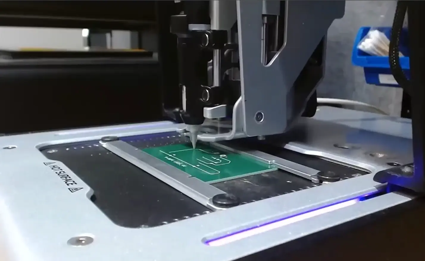A: Slight oxidation can appear over time at the trace edges, but in our experience, it has not caused major issues. The resin in the ink helps protect the printed traces. For V-One, we currently support one compatible conductive ink, though many other conductive inks exist for broader materials dispensing applications.