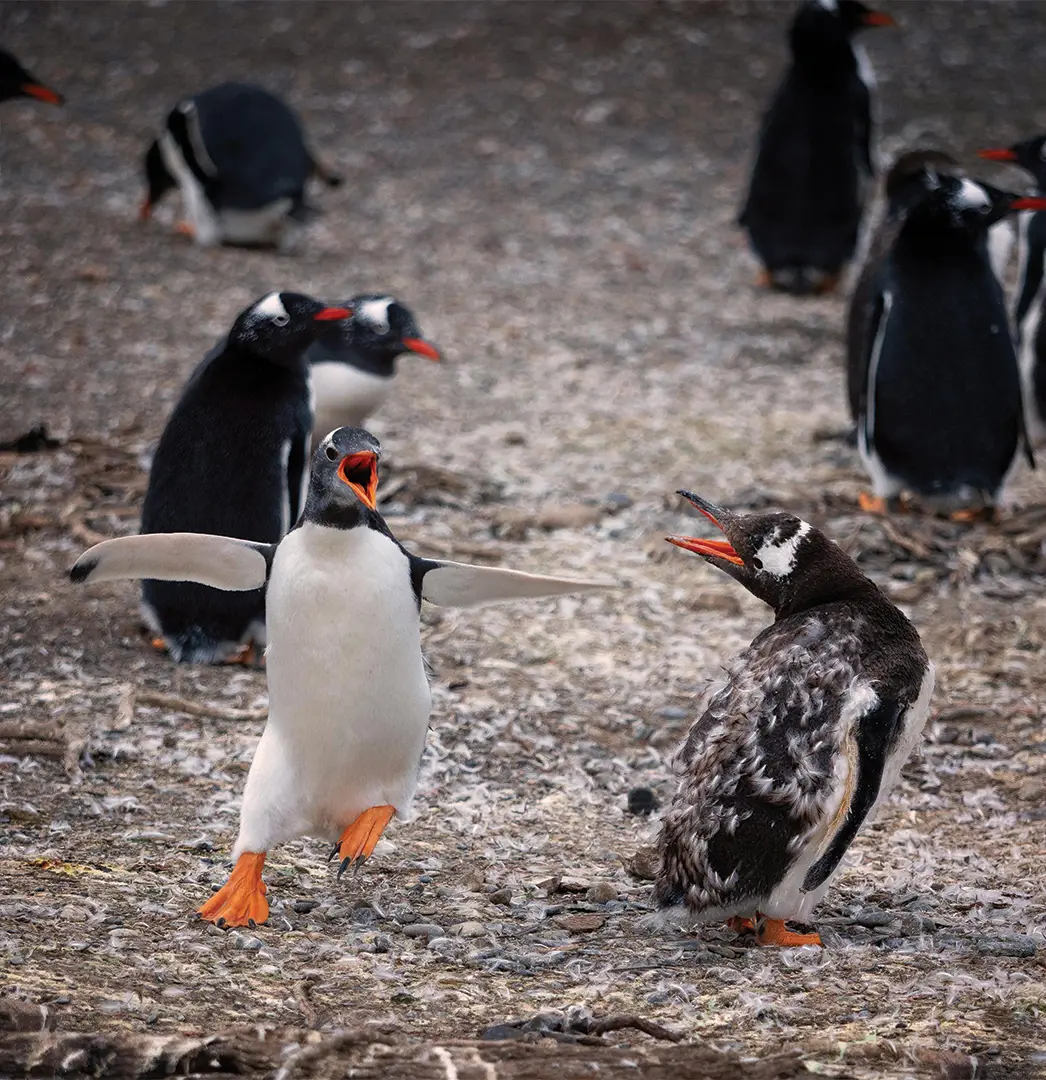 If it’s cold outside, the penguins huddle together tightly to share body heat, reducing the surface area they occupy.